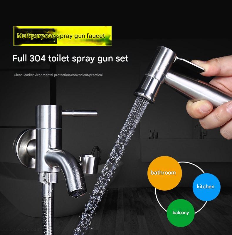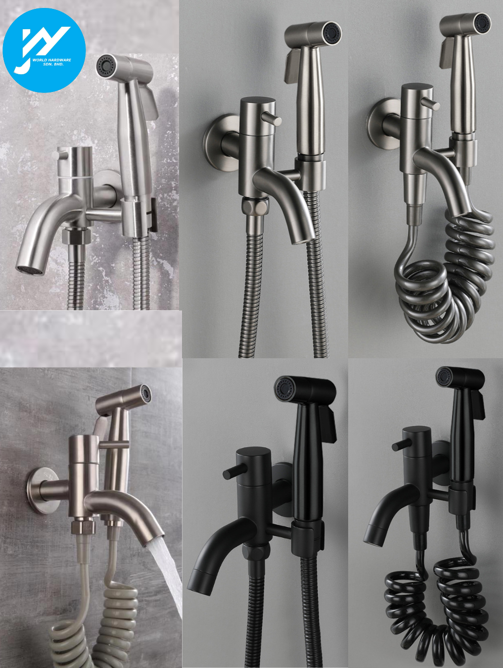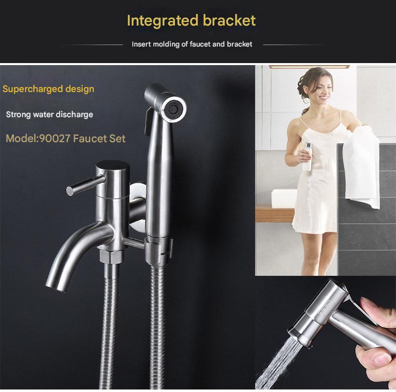 304 Stainless Steel Bidet Set With Faucet 1.5 M Shower Hose Bidet Holder浴室多功能双龙头